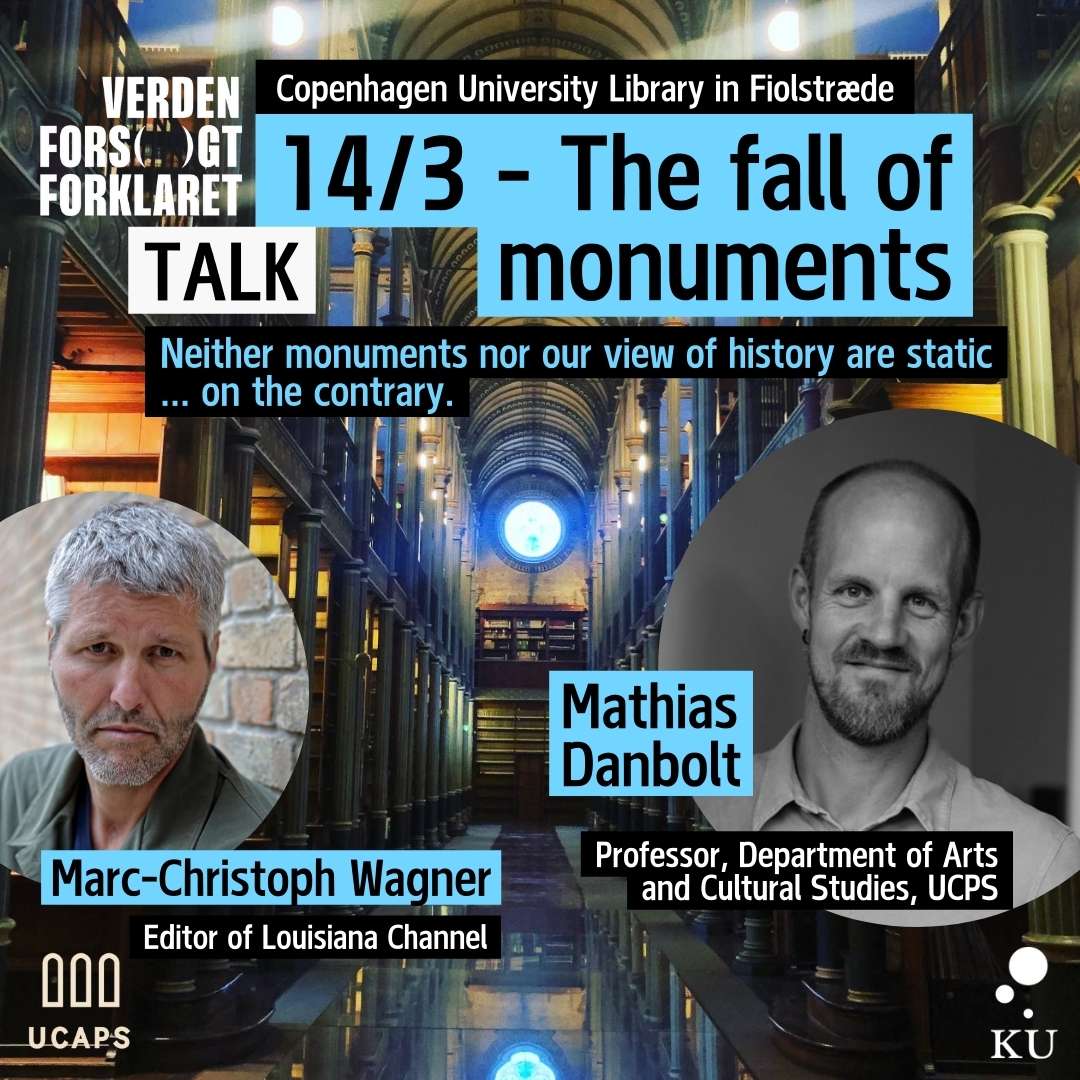 Mød professor Mathias Danbolt fra Institut for Kunst- og Kulturvidenskab på Københavns Universitet, der udforsker berøringsfladen mellem kunst- og kolonihistorie med et særligt blik på de politiske aspekter i vores erindring, vores forhold til monumenter og kunst i det offentlige rum i det hele taget. For giver det mening at restaurere monumenter, der har overlevet sig selv? Hvorfor bliver vi ved med at producere statuer i dag? Og hvilke historier glemmer vi, når vi